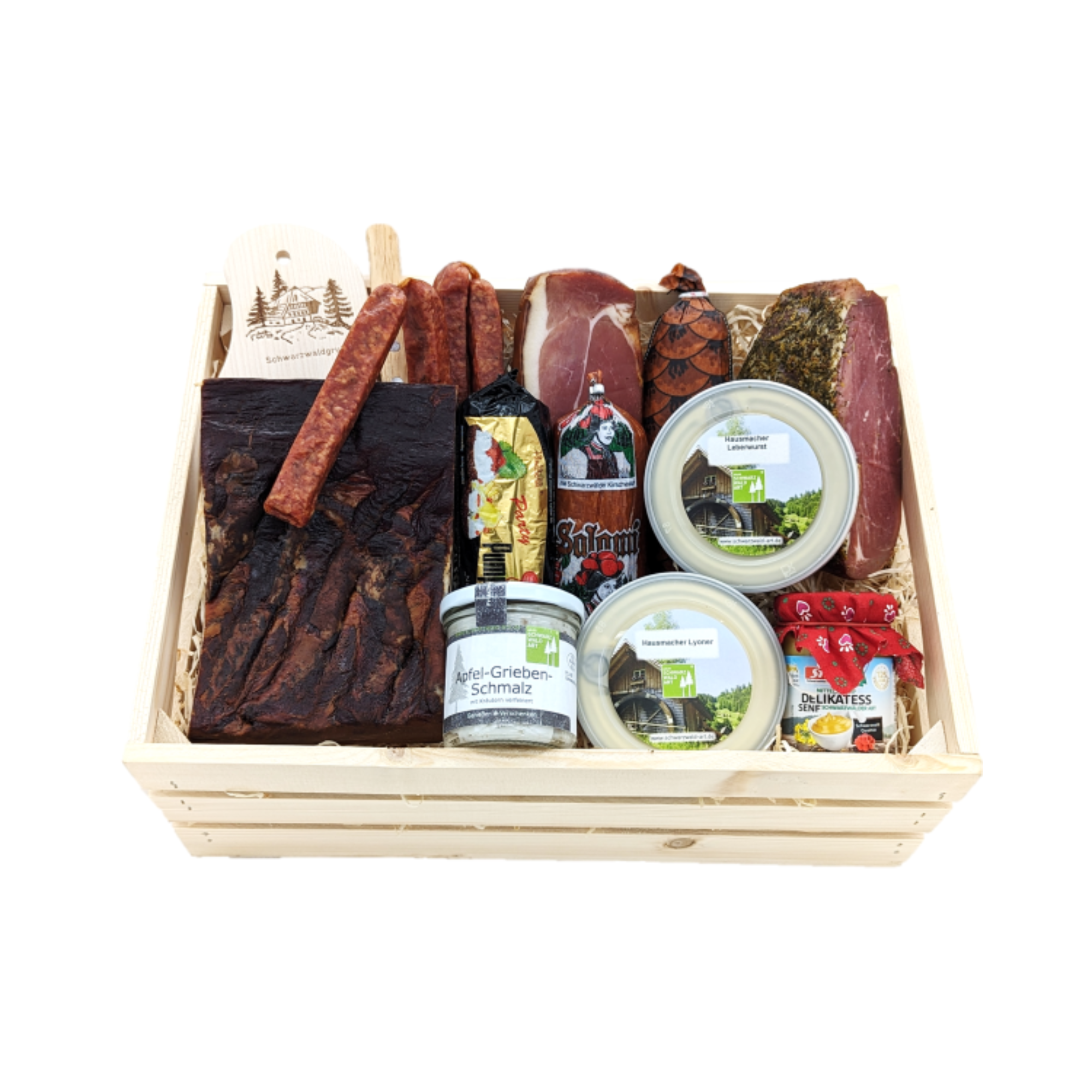 Unsere Geschenkkörbe verbinden traditionelle Schwarzwälder Spezialitäten mit ausgewählten Feinkost-Highlights aus aller Welt.